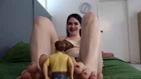 | It’s going to be an action packed day with Holly! You and a friend are playing a board game, and Holly decides she wants to have a little fun, and shrinks both of you. From there, she takes you on many wild adventures! She gets tied down by a tiny army and manages to defeat them all! Not only does she like to shrink guys, she likes to eat them too! She likes the way they feel inside of her stomach, and you and your friend actually help feed her all day long. She also likes to stuff you in her bikini bottoms and carry you around, so you have a very hard time saying no to her! She teases you with her sexy tummy, her gorgeous mouth and her gorgeous feet. It’s a day you won’t soon forget being her little shrunken pet. 50 min. |