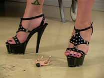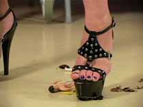 | Sinn has a shrunken man on the floor along with some giant hissing cockroaches. She knows how he loves to watch her crush, so she gives the tiny man plenty of humiliation for his fetish. She is wearing a short dress and black platform spike heels. She shows off her technique by crushing a roach right in front of her shrunken man, and continues to crush every roach flat. She realizes her tiny admirer is getting turned on, so she crushes his dick for more humiliation. After all the roaches are flat, she gives a powerful squash to the little man, flattening him just like a roach. 30 min. |