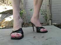| Mistress Chloe can’t get enough of crushing David. She transforms him into so many different bugs, and crushes him in so many different ways. She starts out smearing him as a waxworm into the treads of her Reebok hightops. Then she wears some platform leopard sandals and crushes him as a snail over and over again until he is just a bunch of smear spots on the patio. She is mad as hell, and crushes him as crickets wearing her heavy soled open toe flats. She stomps his body hard into her sandal treads. Wearing stockings and open toe high heel mules, she uses his worm body to shine her shoes, and crushes piles of worms under her shoes. In her red pumps, she crushes crickets and waxworms, both with stockings on and without. She even slips off her shoes to grind the greasy bodies into the floor barefoot. She has fun smearing and stomping more crickets wearing her platform shoes, red strappy high heels, and her black high heel mules, humiliating and degrading her victims the whole time. 100 min. |
