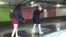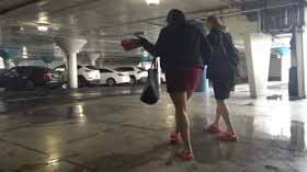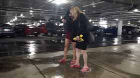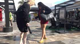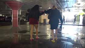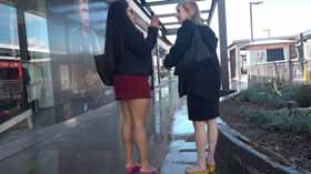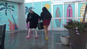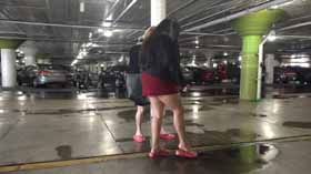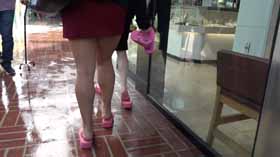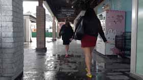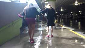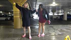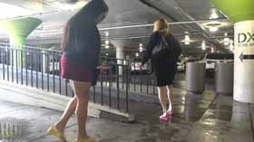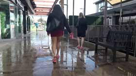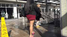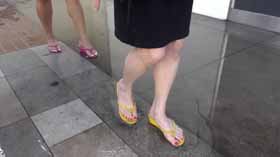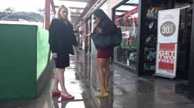 | Nova and Mistress Chloe decide to spend the afternoon shopping at the mall. They realize they made a poor choice in footwear, as the ground is very wet and their flip flop wedges are slippery on the wet walkways. They cling onto each other as they walk around, not wanting to fall in their pretty dresses. They even try each other's flip flops on to see if one pair is less slippery, but no luck! After almost falling, they are glad Nova has a spare pair of platform flip flops for each of them, which they try on for size. They seem to be a little better, but not much! The wet ground makes it hard to walk without slipping. Eventually they decide it’s too risky in their shoes and head home! 40 min. |