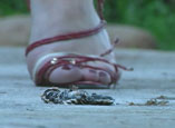 | Chloe’s heels viciously strike the pavement as we view her callous march back and forth across the concrete patio. Each determined step exerts brutal power to destroy any unfortunate creature in her course. She demonstrates her crushing skills wearing a variety of pumps and strappy high heels demolishing one at a time a number of large fish, goldfish, crabs, crawdads, roaches, snails, spiders, millipedes and worms all doomed to die under her soles. A few unlucky victims feel the pierce of her heel and even hang on to her shoe for a wild, wretched ride but only to end in a leveled pile of guts. Some views are from ground level and some from above and on occasion Chloe savors a cigarette on her trampling trek. She climbs stairs with worthless prey under foot and eventually puts them all out of their misery with her sacrificial steps. A special bonus scene features extremely up close and under glass views of Chloe beheading snails with her heel and then smearing them all flat. Chloe’s crushing at her best. 120 min. |