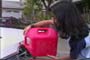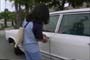 with the gas can. She gets back to the car, and slips off her flip flops,