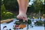military bases, army men, helicopters, trucks, and tanks. Her bare feet