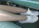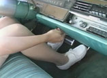 shift. She comes out to the Chrysler Imperial, wearing her white work shoes.