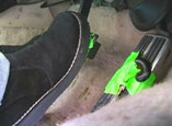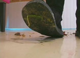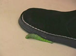 her heavy soled, black, suede boots, she uses duct tape to secure their
