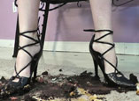 peep toe pumps and black stockings. She crushes the clay body, only to