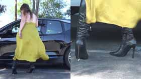 to her BMW i3 in her long-slitted halter dress and her black patent pumps.