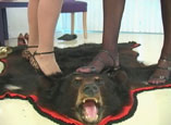 | Debonair divas, Angelique and Desiree, demean a dingy derelict while traipsing and trampling over their burly bearskin rug. The girls get home after a cushy day at work, in their high paid positions. Desiree's wearing a racy red dress, with black pantyhose and black patent pumps. Angelique is stuffed into a small black top. She's wearing a knee length beige business skirt, black hose, and some strappy clear heels. They walk into their living room, trampling over their bearskin rug. All around their living room, is a wide variety of heels and stockings. Angelique and Desiree change into different pairs while discussing their day. They're both disgusted by all the homeless people they have to encounter on their way home from work. The girls think it's funny that there are so many homeless and hungry people out there, while they both enjoy a lavish lifestyle. They come up with the idea of bring a bum into their home so they can berate and belittle him just for fun. The movie switches to a first person point of view camera angle, and you get to see through the eyes of a hungry homeless person, who gets brought in off the street and berated by these bitchy beauties. They tease and taunt you while changing their pantyhose and heels in front of you. They take your possessions and trample them into the ground. They even eat food in front of you, before tossing to the floor and stepping on it. When they've had all their fun, they kick you back outside in the cold while they continue trampling the bearskin rug. 60 min. |