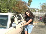 | While responding to an ad for a used Cadillac, you have the good fortune of meeting the delightful Dylan, who's waiting for you in a pair of sexy blue jean shorts and a pair of blue slip on vans with no socks. You can't help but notice the thin gold anklet on her right foot. She pops the hood to show you the engine, but your eyes stay glued to her sexy shoes. Dylan closes the hood and goes to start the engine, but the car won't start. She cranks the engine over and over again, assuring you that it will turn over. She invites to sit in the back seat while she rests her legs across the front seat to rest her feet. After a while she tries again and the car roars to life. Dylan tells you to buckle up as she gives you tasty test drive around town. In the second segment, you're a bad student who's being taken home by your principal, Chloe. She's not very happy with you as she orders you into the car. She's wearing a knee length back skirt and a pair of burgundy loafers with black pantyhose. Chloe has trouble getting her old 78' Cadillac to start. She notices you watching her feet as she pumps the gas pedal. She orders you to get down and get a closer look at her loafers. When she sees a bulge in your pants, she commands you to get in the back seat until she gets the car started. In the final segment, Chloe's excited to take her new Corvair out for a spin. She hops in the drivers seat wearing a pair of grey jeans and a pair of black and white flip flops. She has trouble getting the car to start so she pumps the gas pedal over and over hoping it will help. The car finally starts and Chloe goes to pick up her friend, Penelope. Chloe lets Penelope drive and you get to watch her hot pink toes as she works the pedals in her golden sandals and golden toe rings. 40 min. |