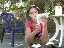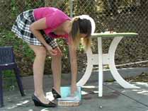 | Daisy has heard you have a foot fetish. She slips out her ballet flats, and makes you get down at her feet and smell them fresh out of her ripe shoes. Since you have had the privilege of kissing them, she now gets to shrink you into a cricket and has you captured in a bag with other crickets. She takes great pleasure in smashing and crushing them flat under her ballet flats. She even crushes one lucky cricket with her finger. Saving you for last, she makes sure you give the sole of her shoe a kiss before smearing you out on the floor. Next, we see Kitty on her sofa. She is getting bored with reading her Bible and being a good girl, so she decides to have some fun and be really bad. She grabs her bowl of goldfish and heads outside, and starts putting the goldfish in the pages of her Bible and jumping up and down on them. She tortures some goldfish with a cigarette, with her necklace, and even places some inside of her wedge shoes. She is getting giddy with all the excitement and goes on a crushing rampage. She even starts to rip and burn her bible, placing the goldfish in the flames. She finishes off her bonfire by burning her shoes, happy with her destruction. 35 min. |