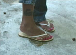 she casually strolls along the sidewalk in Brazil, eliminating unfortunate