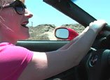 that accentuate her red polish toes nicely. Chloe even does a little driving