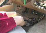 | Chloe is so glad to see you. Her car had stalled out on her way home from work and now she wants you to ride with her over to her friends house, in case something happens again. You follow Chloe to the Cadillac admiring her sexy red dress, nude hose and tan strappy high heels. She gets in to start the car up but it isn't turning over. She tries a few times but takes a break because her feet are so tired from her long work day. You offer to massage her sore feet and Chloe accepts, admitting she saw you checking them out earlier. Afterwards, she decides to change out of her hot hose and returns wearing a pair of brown flat gladiator sandals, much more comfortable. She tries again to start the car but it isn't working, the car sounds dead. To ease her frustration, you offer to massage Chloe's feet again to help her relax and she finally admits she isn't going to get the car going and will have to cancel her evening plans. In the second feature Chloe is wearing a short floral skirt and white flat leather thong sandals as she joins you in the car. She knows you've been waiting for her to arrive because you love to watch her pump the gas pedal. After lots of coaxing and pumping she finally gets the old car started and you are on your way to the park. When you arrive, Chloe walks toward the grass to have a seat and you follow close behind watching every step she takes. You slip off her shoes admiring her bare feet and unpolished toenails while you give her a sensual foot and leg massage. It's just what Chloe needed on her sore and tired feet. After you get back to the car Chloe is having trouble again getting the car to start. But you don't seem to mind, she knows you love to watch her pump the pedals and Chloe gives you a show. 35 min. |