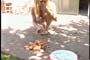 punching bag hanging him from the tree. She burns him with an iron, tosses