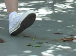 tight jean shorts, a skimpy top, and dark soft-soled moccasins—paces