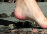 she displays her bare soles proudly next to the pile of crushed bodies.