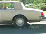old Cadillac to make some fruit juice. She's showing lots of leg in her