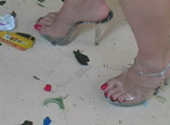 | These fools have set up their vintage toy collection for display with explicit warnings that no touching is allowed. In the distance, a Goddess Diana approaches, rattling the ground with every massive footstep. One look at the warning sign sends Diana into a rage. How dare these insignificant fools think they can tell her what she can and cannot touch? Clad in a skintight blue dress and wearing heavy clear stiletto sandals, Diana uses her powerful legs to pulverize the collection and townspeople at her feet. Throughout the next hour and a half, Diana smashes every inch of the collection while you watch in awe at the destruction caused by such a cruel and sadistic goddess. If you're lucky, you may even get a glimpse of her silky, nude panties as she raises her foot high in the air before delivering the crushing blows! What was once a pristine collection has now become a pile of rubbage.