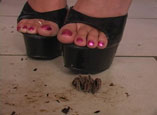 | Seven enticing segments featuring crush superstars Chloe and Diana. Diana begins with a pair of evil platforms casually stomping earthworms as you watch from below before she changes into black platforms and smashes some crunchy beetles and a hairy tarantula on the kitchen floor. Next, Chloe and Diana have a contest to see who can smash their crawdad victims the flattest with just one, vicious stomp. Diana hops back on the table for some more snail slime production before casually crushing some more snails and a giant tarantula on the patio. Chloe is on the table beating down some helpless maggots in red, strappy platforms before changing into white open-toe heels and squishing more snails and worms on the patio. Two giant millipedes and a hairy tarantula face certain death on the glass table with Chloe finishing her destruction in the kitchen wearing fresh, white platforms to destroy a bunch of creepy crawdads. 60 min. |