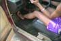 shoe, and changes into some silver stiletto slides. The car starts right