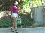 sandals. She is waiting outside for her ride, pacing anxiously. She discovers