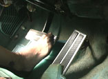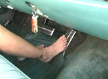 in the stick shift Isuzu. Her nylon soles and toes press the pedals. And