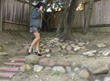 into the powdery dirt beneath her feet. She changes into a pair of strappy