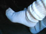 the gas simultaneously. Her shoes get in the way, so she slips them off