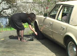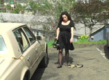 | Looks like Dylan's in for an unexpected workout. Lucky for you, somebody let the air out of the tires of her old Cadillac. She pulls her foot pump from the trunk and reluctantly gets to work. Not dressed for the occasion, Dylan's looking delicious in her short black dress, black pantyhose, and black patent pumps. When her workout starts getting tough she slips off her heels, revealing her red painted toenails. The camera moves in to capture all her gorgeous details, moving from her sweat glistened face down past her powerful pumping legs to her pantyhose peds. She moves from one tire to the next wondering if someone did this to her on purpose just to watch her pump. 30 min. |
