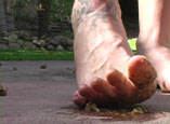 | Ivy arrives home wearing a white, summer dress and pretty, pink thongs. As she makes her way across the driveway, she annihilates all of the slimy, juicy caterpillars and crunchy beetles in her path. On the kitchen table, she finds a note from her boyfriend along with a container of critters he has left for their special video. Knowing how turned on her man gets when he watches helpless victims, Ivy places her camera on the tripod and sets out to make a very special video for him. She has changed into a pair of flat, black thongs and brutally crushes tons of beetles, caterpillars and snails with her bare feet leaving gruesome streaks of guts in her path. Of course she shows the camera the bottom of her soles now covered in bug guts. Later that day, Ivy awakes to find her kitchen is infested with cockroaches. Her roommates are so disgusting but Ivy's thick soled flip-flops will soon exterminate the intruders. When she has finished in the kitchen, she runs back to the patio and finds a few more snails that need to be dealt with. Watch through the eye of her one remaining victim as her bare sole hovers over your quivering body and teases you with the pain you will soon feel as it comes crashing down on your trapped body. 60 min. |
