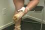 lonesome snails while wearing a sexy, tight dress and black gladiator