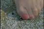 with her pretty feet. Hundreds of crickets see her giant bare sole coming