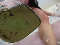 a bunch of crickets on the glass table. She gets so turned on, these crickets