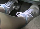 She drives off as we watch her feet work the pedal of the Honda. As she