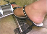 foot and with two, she even takes her shoes off and tries her bare feet.