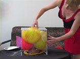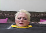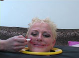 | Mistress Chloe has her unfortunate slave Anna securely bound beneath the table with her head poking out from the center. The heater is turned on high and Mistress Chloe wraps Anna in plastic wrap to get her nice and sweaty. If she can't stand the heat, Mistress Chloe has a line of willing slaves desperate to take her place. The humiliation continues as Mistress Chloe puts a plastic box over her head and fills it with plastic balls and water balloons. Hopefully one will explode and cool off poor Anna! Mistress Chloe is constantly coming up with new and exciting ways to humiliate her slaves and today is no exception. Watch and see what Mistress Chloe has up her sleeve as Anna is forced to smile through all sorts of humiliating experiences! 30 min. |