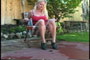 soles to a slimy mush. Watch as she paces back and forth in a pair of