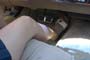 her feet as she strokes the gas pedal and pumps the brake. She even slides