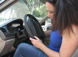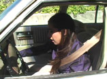 Seville in her tan pantyhose with pointed toe pumps. As she is driving,