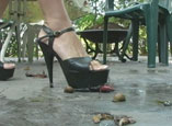 platforms over her sexy bare French-pedicured toes. She leisurely lights