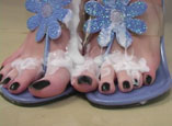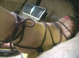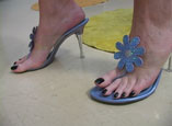 sandals, and a pair of nude pantyhose. She places you down close to the