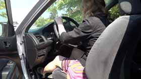 her right foot into the gas pedal trying to get the car to cooperate.