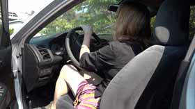 away, she has a problem starting it, so she lights up a cigarette to calm