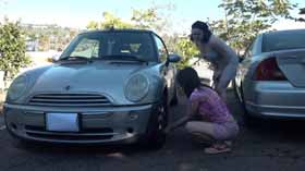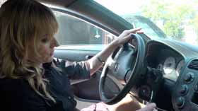 She tries everything she can to get the car started, but no amount of