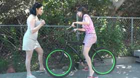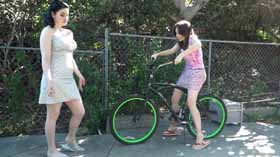 Next, Holly pops Lucy’s bike tires with an ice pick, making her helplessly