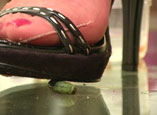 | Jenna has an important meeting tonight and orders you to clean her house while she is away. However, you decide to throw a party. Unfortunately, plans soon change and Jenna arrives home hours earlier than planned. Infuriated by your disobedience, she quickly transforms your guests into helpless goldfish and caterpillars before changing you into a six inch tall man. After ordering you to worship her beautiful feet and legs, Jenna throws you onto the glass table and forces you to watch your guests meet their fate. Jenna uses her strappy black sandals to annihilate the bouncing fishies and juicy caterpillars as you helplessly watch. A few are dropped into her shoe and smothered as her stocking covered sole comes crashing down. Amazing POV shots show your friends' final moments as Jenna destroys them with her stockinged feet. Perhaps next time you will think twice before disobeying your mistress. 60 min. |
