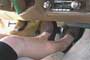 | Pedrianna approaches her Cadillac wearing a tight black shirt, sleeveless tank top and comfy brown loafer slippers. Her legs are bare and her toes are painted a sexy shade of red. She is late for an important appointment but the car will not start! She pumps the pedals over and over, cranking the engine and begging it to turn over. She takes her feet out of the slippers and uses the slippers for traction as she presses the pedals but the car keeps whining like a sissy, refusing to start. Pedrianna eventually jumps out to check the engine but can't see what the problem is. You'll enjoy 45 minutes in all as Pedrianna works the pedals before the engine finally surrenders and she is on her way.