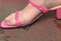 out one by one. Her nude nylon toes look sexy in her sandals, as she