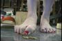| Sasha is working hard at her desk. She sensually rubs her legs together showing off her red pedicured toe nails through the peep toes of her black patent high heels. She removes her shoes and walks across the room to the water cooler to find a hissing beetle on the floor. Sasha squashes him flat with her bare sole. Now watch from an under glass view as Sasha crushes crickets and beetles with her bare feet. She also finds crickets on the concrete walk way and quickly kicks off her sandals to crush them and feel the guts ooze under her naked soles. Back to the office we watch Sashas’ feet under the desk as she crosses her legs and dangles her wooden clogs. She looks down to see a cricket on the floor. Sasha doesn’t want to mess up her new shoes so she removes them and stomps the pests’ dead. There must be an infestation but Sasha can take care of it. After such an eventful day at work Sasha still has crushing on the brain and goes home to crush a few more messy crickets. Great up close views of absolute destruction by her beautiful bare feet. 60 min. |