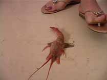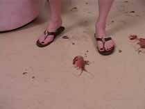 | 3 ladies step up to the bathroom scale. Each one steps on to reveal how much crushing power they can exert with one foot. Wearing flat sandals and thong panties, you don’t even see the mystery crushers faces. All you see is their destructive feet and leg muscles twitching as they crush. Each lady demonstrates her power on individual bugs sealed in bags. They start with crickets and move onto tarantulas, roaches, and scorpions. The first step is taken and the mess revealed, then the bug is twisted into oblivion while you pan up their luscious legs. Next, each girl has a bug on the floor and is given the same treatment. Shrimp, snails, goldfish and millipedes are crushed to goo. Each girl shows her arm strength by crushing a cricket in her powerful grip. For the finale, they place a tarantula under a board, and all 3 girls stand on it, showing just how flat he becomes. 30 min. |